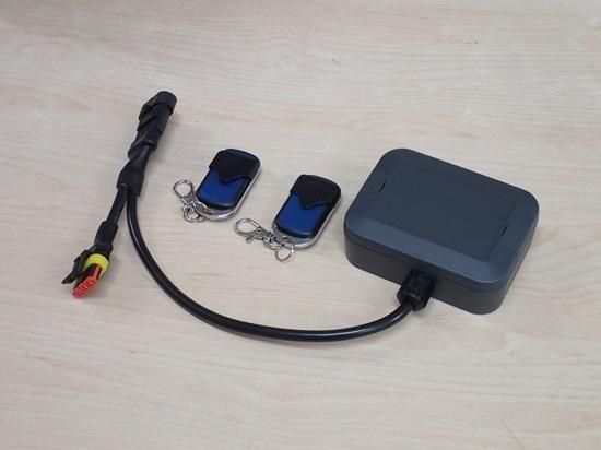 K-Customのライブスコープローテーターのワイヤレスリモコン(2個セット)です。コントロールBOXをフットスイッチのカプラーに割り込ませるだけで手元のリモコンで操作できるようになります。