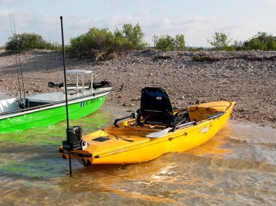をセットすることでリモコンで上下に動かすことができ、任意の場所で小型ボートやカヤックをステイさせることができます。