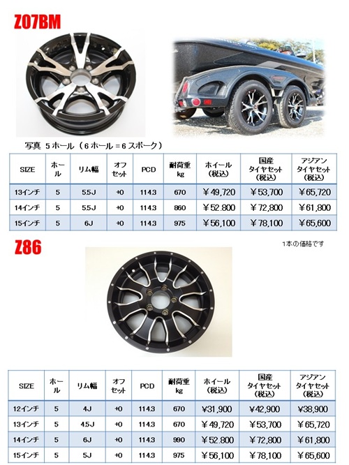 トレーラー用のアルミホイールです。トレーラーをドレスアップしたい方にお勧めです。商品の在庫確認お問い合わせは下記電話番号orメールへお願いします。